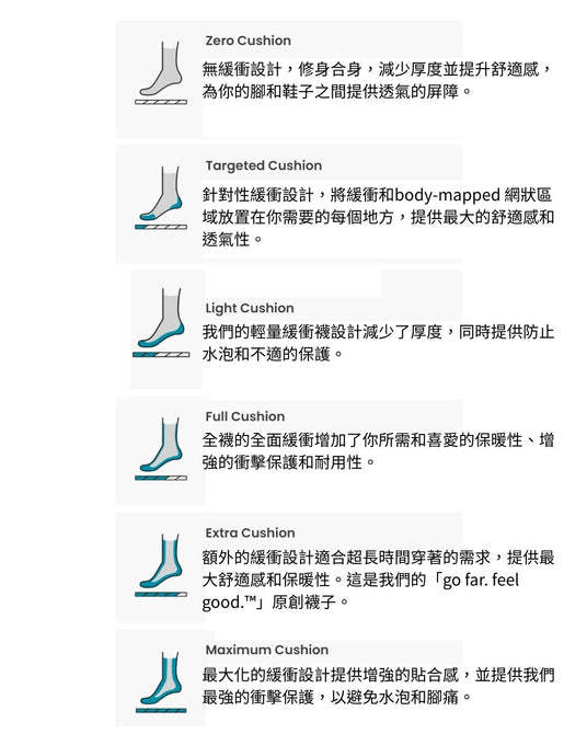 輕型緩衝健行襪,提供四季舒適感。