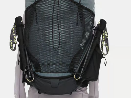 登山杖定(前後適用於Z型杖), 針對女性人體工學設計的承載系統,女款的背長較短,肩帶也依照女性身材量身訂做。