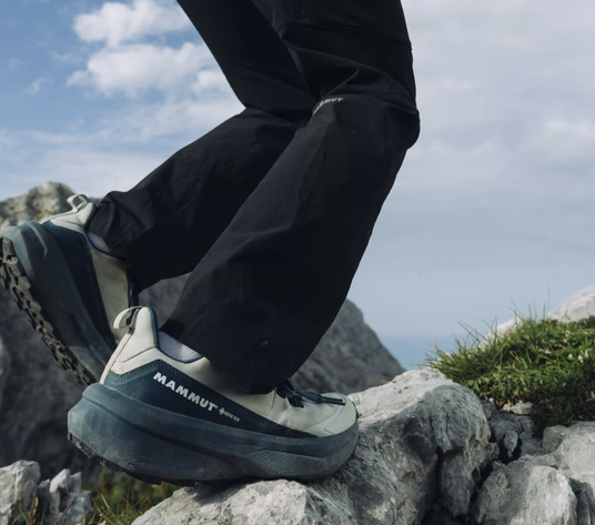 這款鞋子結合了越野跑鞋的靈活性與登山鞋的耐用性。採用 Mammut Swiss Design 鞋底,提供可靠的抓地力,適合您喜愛的當地小徑。其搖擺形狀的鞋底設計確保平穩著地和輕鬆踮腳,最大化能量回饋。